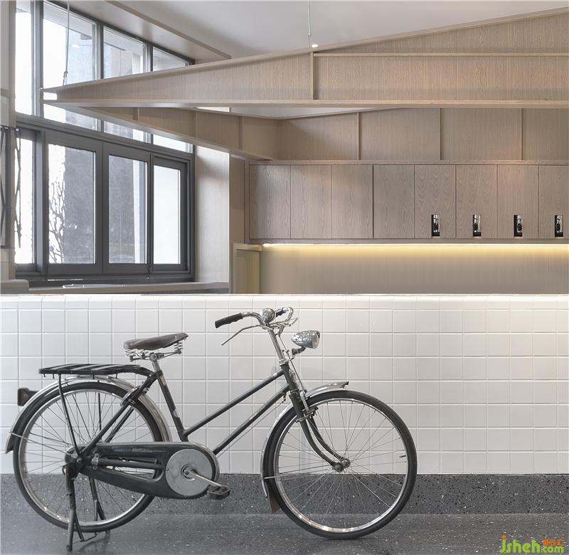 走進店內(nèi),目光所及充滿了舊火車站的氣息,一臺28老式自行車側(cè)立在門口。隔著各式紋樣的花玻璃,看到人影閃爍,以及半遮面的一個大大的時鐘。轉(zhuǎn)身向里走,是兩個郵筒。在臺灣郵筒是成對出現(xiàn)的,有一對郵筒還因為被大風吹彎,模樣意外可愛成為臺北最熱門景點之一。郵筒后就是暖暖茶歇了,干凈的小白磚臺面,轉(zhuǎn)角處的弧形小白磚,隱約透露著純樸與精致。黑糖珍珠的霧氣裊裊升騰,暖暖的香味彌漫整個茶歇,融合師傅們忙忙碌碌的身影,仿佛排隊進站一樣的熱鬧。餐廳設(shè)計