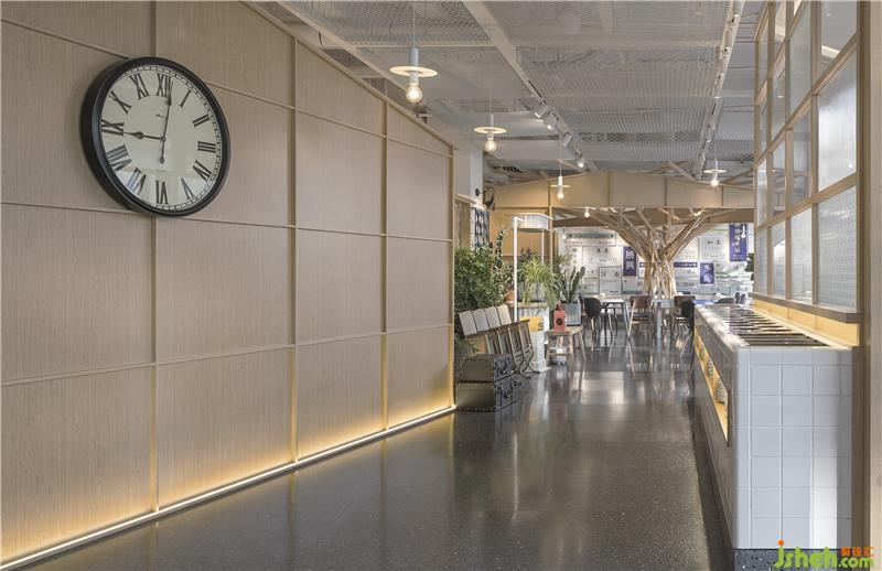 繼續(xù)移步往里走,外場的長條座形式是以車站候車室為靈感來源的。窗邊的墻上放置了具有臺灣舊時代特色的鐵花窗。像時間熨燙過了墻面,有一方嫻靜的鐵花窗鑲嵌著,屋子里永遠有一段時間屬于來就餐的你。穿過外場就看到了出餐區(qū)域的花玻璃,與入口處花玻璃,隔空呼應(yīng)。人們都說車站是悲歡離合的縮影,在暖暖這兒更想讓每一位來到這里的客人體味美好幸福的相遇。它靜靜的在這喧囂繁盛的商業(yè)景象里,創(chuàng)造一處溫馨雅靜的空間,給生活中給行色匆匆的你我,帶來片刻的休憩。餐廳設(shè)計