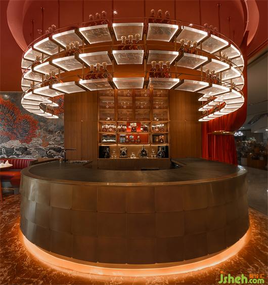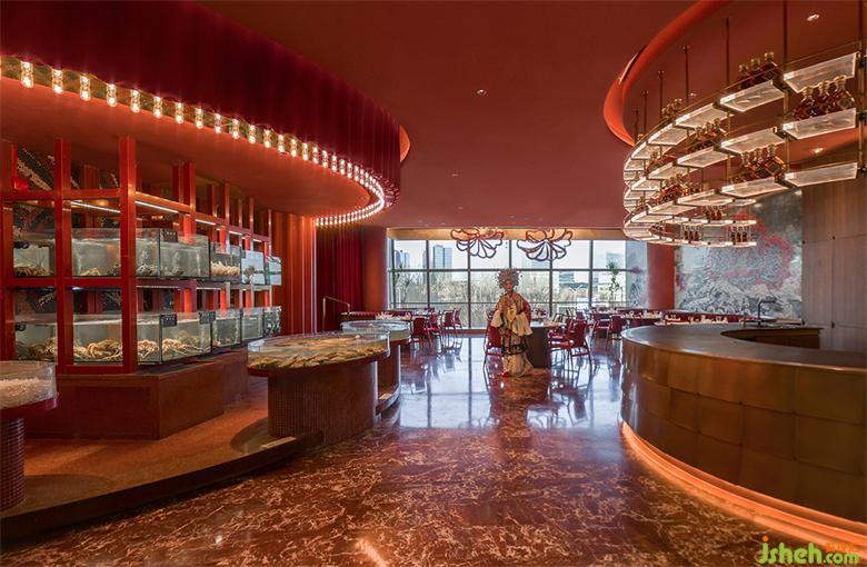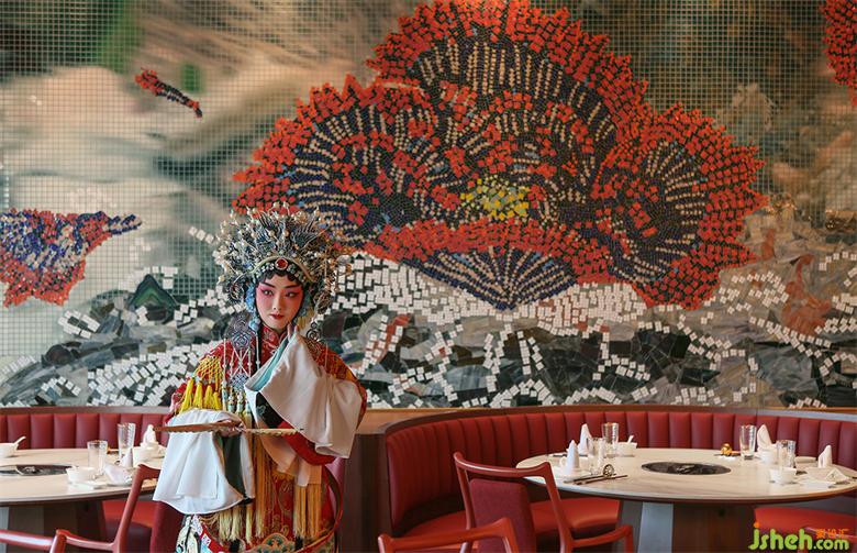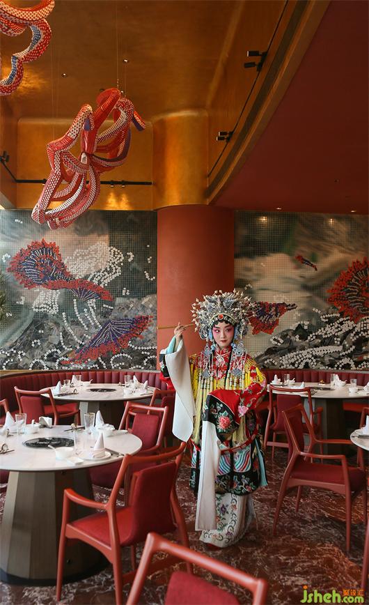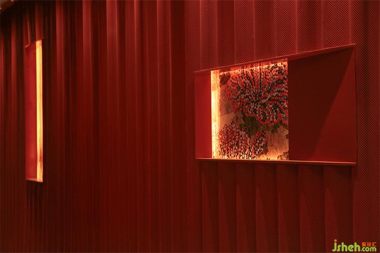同時(shí),幕布飄垂而下的裙褶不單單體現(xiàn)“猶抱琵琶半遮面”的戲劇神秘感,更是直觀的模仿“水浪”,與粵界海鮮火鍋的主題產(chǎn)生呼應(yīng),即是“外有乘風(fēng)破涼一景,內(nèi)修乘浪而來(lái)”之寓意。