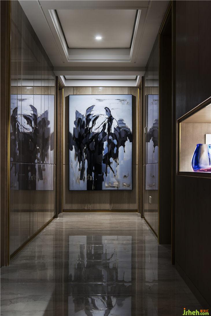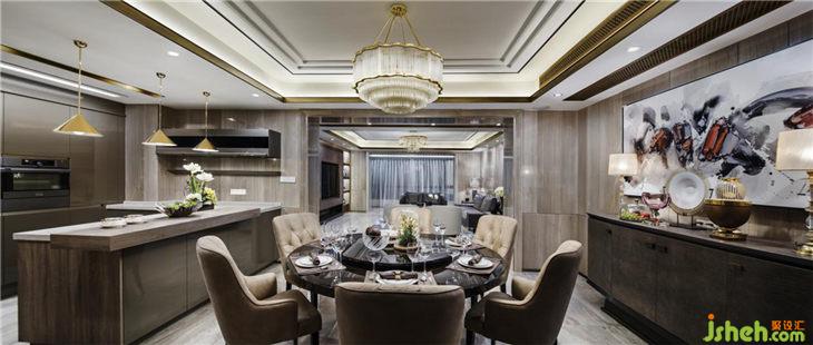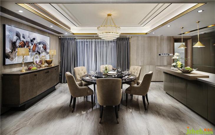 餐廳同樣延續(xù)客廳空間的顏色基調(diào),營(yíng)造出貴族式的冷靜。如果說,港式輕奢是一種生活氣質(zhì),那么在這里,輕奢的表達(dá)更多見于顏色的冷處理之上。