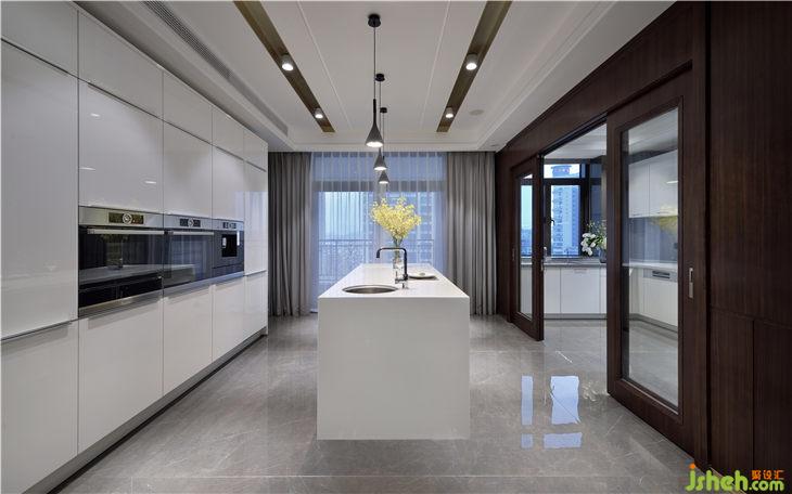 生活的藝術(shù),如冬日暖陽(yáng)般的慵懶,似一花一世界的溫情,還若漫步人生的優(yōu)雅腔調(diào)。開放的中西廚和餐廳空間融會(huì)貫通,兼顧功能與美學(xué),有著一氣呵成的大宅氣派。設(shè)計(jì)師憑借堅(jiān)實(shí)的功底和醇熟的技法,游刃有余地把控項(xiàng)目節(jié)奏,循序漸進(jìn),勾勒出戚戚于心的精奢與理想。