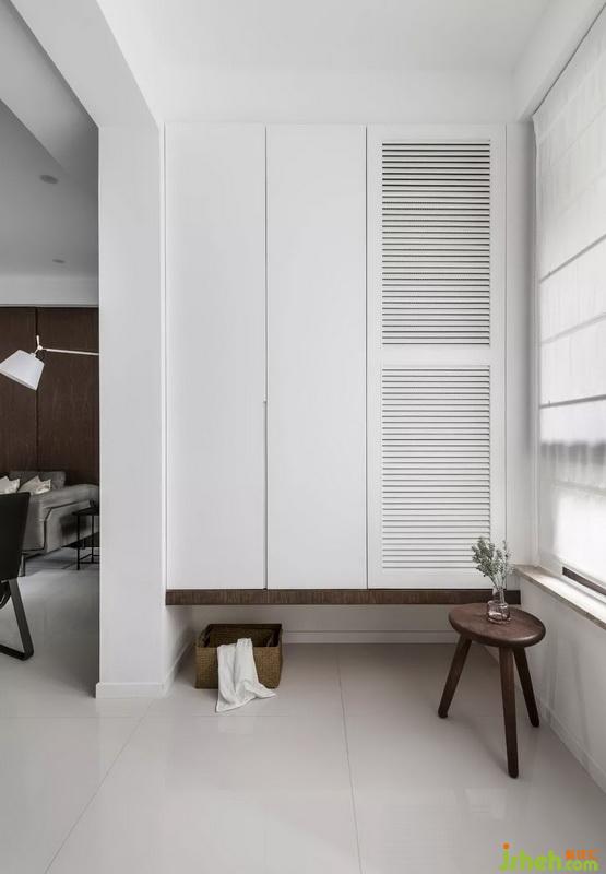 門廳懸挑鞋柜,格柵百葉柜門更具透氣性。