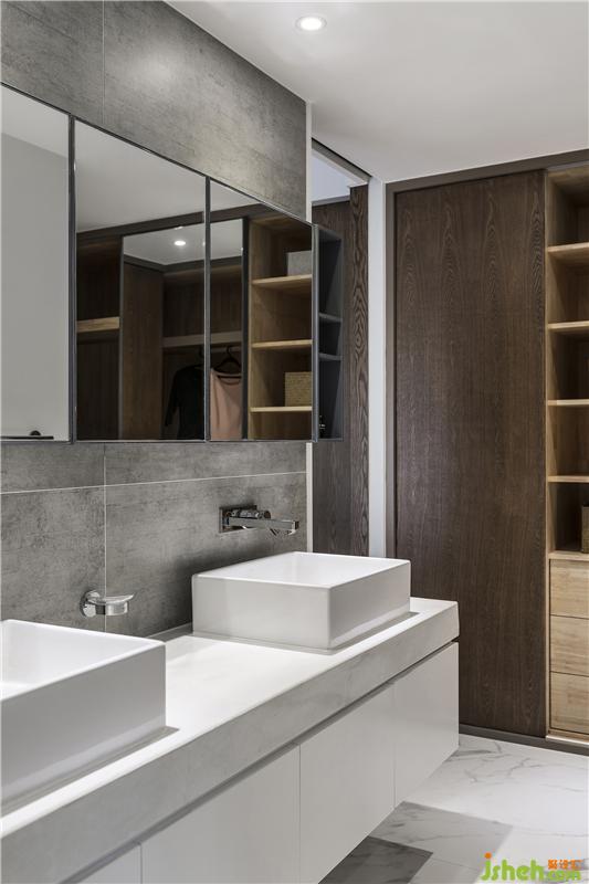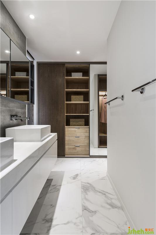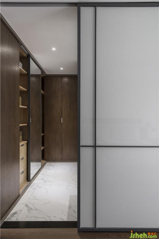 通往更衣間的白膜玻璃移門,裝修設(shè)計凸顯細(xì)節(jié)比例,點(diǎn)綴出空間的品味韻律。