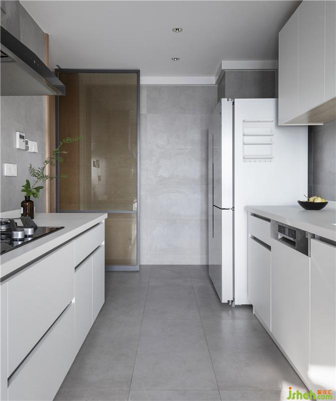 中式廚房的家裝效果設(shè)計運用白與灰的基調(diào)色,賦予干凈清爽的空間表情。
