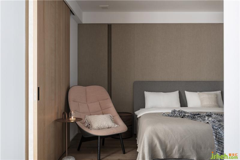 臥室電視墻與客廳設(shè)計手法呼應(yīng)。