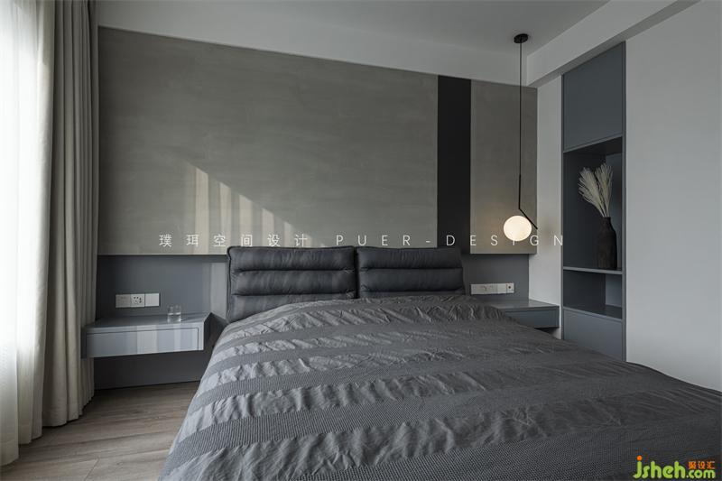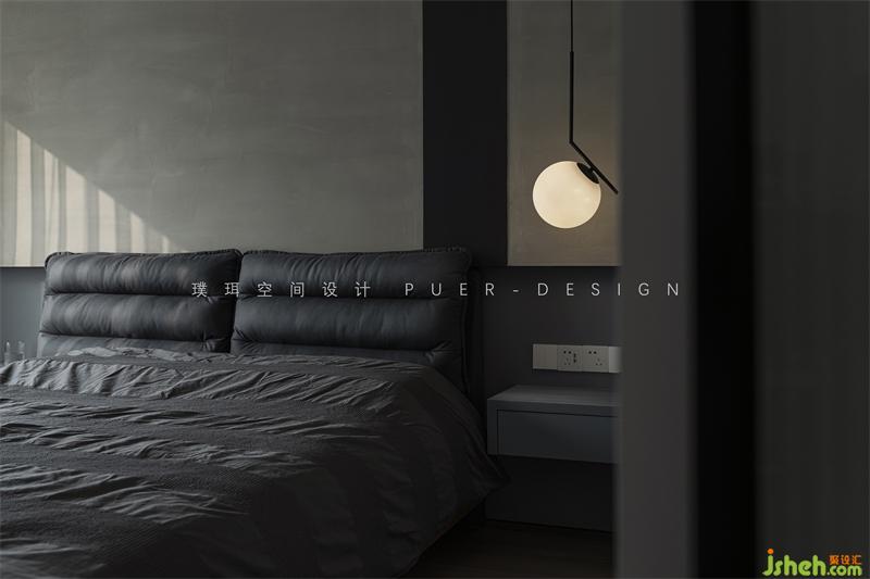 家居設(shè)計用干凈的線條勾勒利落的量塊造型,渲染整體風格的硬朗與質(zhì)感,冷調(diào)和暗調(diào)作為永恒的主色,共同營造高知男性沉穩(wěn)理性的空間表情;同時以原木飾面作裝飾,配合柔軟的沙發(fā)家具,輔以柔和的燈光烘托,圍合出兩人一貓的互動場域,營造平靜且溫馨的氛圍感。