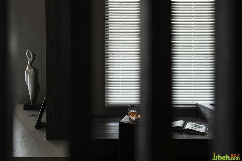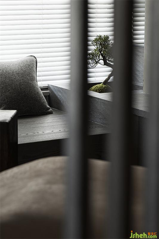 八分藏兩分露,木飾面柜體包容各分區(qū)的收納空間,細(xì)膩的紋路中和了灰調(diào)空間的硬朗,與盆栽、擺件構(gòu)成一個個禪意小景,意蘊綿長,讓空間與人同生共長