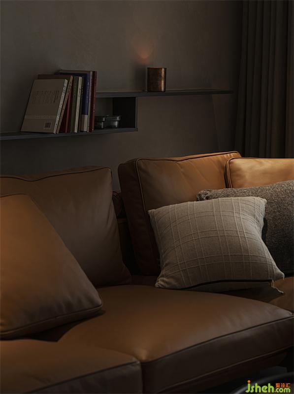 家居設(shè)計中各種點光源重點照明局部,透過格柵帶來光影變化,在空間形成明暗對比,營造出柔和溫暖的氛圍感和儀式感,橘色沙發(fā)、燭光、音樂、美酒,盡情釋放對生活的熱愛。