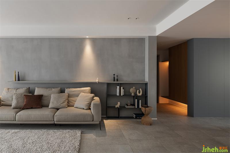 于是“沉靜”貫穿于整個(gè)成都黑白灰設(shè)計(jì)中,灰藍(lán)相接的主色調(diào),點(diǎn)綴原木色木飾面,于理性中增添一絲柔和,不同的紋理塑造了空間的質(zhì)感。摒棄了繁冗復(fù)雜的裝飾,用簡(jiǎn)約卻不單調(diào)的手法使不同材質(zhì)和色彩在空間碰撞,線條分割的比例恰到好處地勾勒出空間的層次感,大氣而沉穩(wěn)。