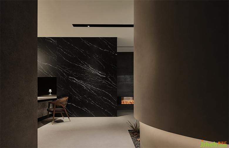 柔和的弧形為原展廳設(shè)計(jì)本冷硬的巖板