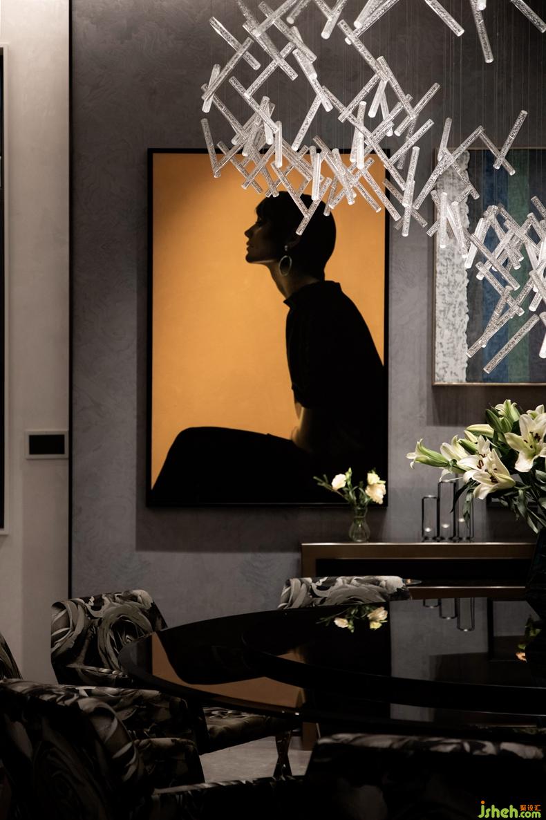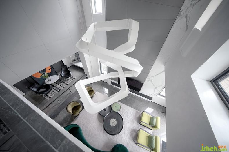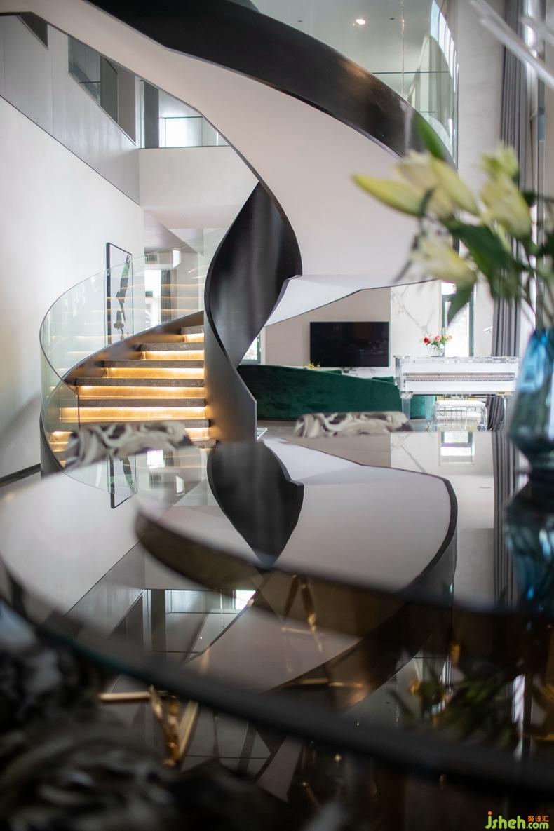 家具選用意大利知名品牌,非常講究品質(zhì),同時(shí)凸顯個(gè)性獨(dú)特與眾不同,并以流線形為主來(lái)表現(xiàn)女性的優(yōu)雅。那一架透明的鋼琴造型乖巧優(yōu)美,透明的質(zhì)地和應(yīng)著白色大理石的花紋質(zhì)感以及圓形樓梯的力量感,妥當(dāng)?shù)卮嬖谟诳臻g一隅。別墅裝飾精心選擇的掛畫恰如其分地豐滿著空間有些高冷的表情。