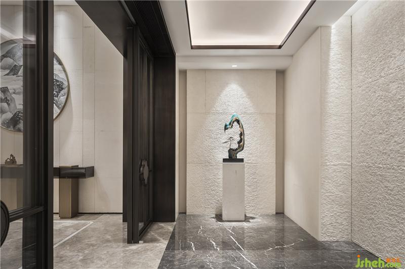 國人崇玉,所謂“玉不琢,不成器。”玉器的制作要經(jīng)過刻、碾、琢、磨、鉆等多道工序,就如同我們對待居住空間一樣,經(jīng)過了不斷的否定,推敲到確定。因此該項(xiàng)目的公共空間的設(shè)計(jì)靈感來自于“玉”,主要從玉的品質(zhì)及器型的處理上入手并進(jìn)行延伸,為空間提取了玉的弧線及它的溫潤與高貴。