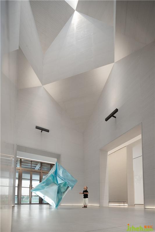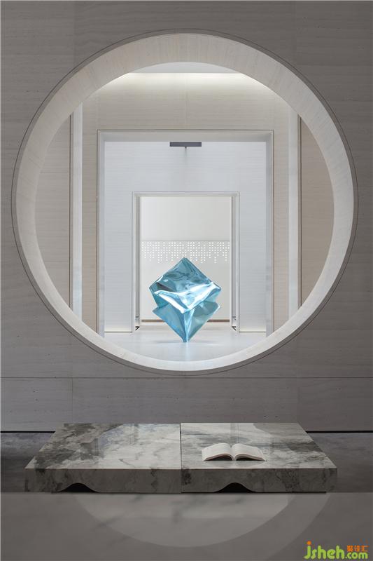 而位于空間正中、凝聚藝術(shù)氣息的藍(lán)色雕塑《檐合》,出自藝術(shù)家張齊努之手,與古建筑屋檐元素形成語言共鳴,一舊一新的文化碰撞,創(chuàng)造豐富的空間審美體驗。