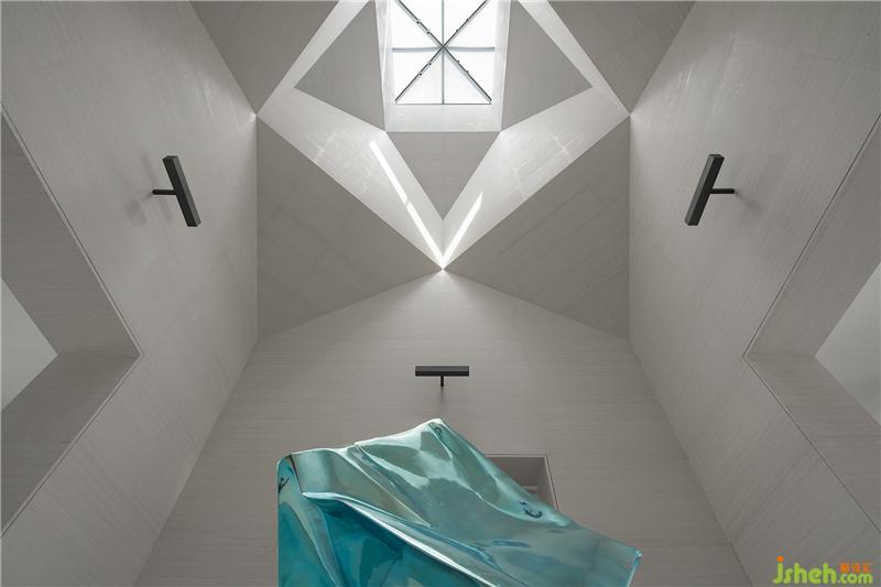 探入空間,是結(jié)構(gòu)四方的藝術(shù)廳,設(shè)計師李益中在這方小天地中拋開拘謹(jǐn)?shù)乃悸?,擺脫常規(guī)的手法,從渭南古筑的檐木結(jié)構(gòu)中擭取靈感,解構(gòu)元素,保留其最經(jīng)典的符號,為天花打造層次豐富、光影映襯的藝術(shù)光感,亦形成了一種磅礴的藝術(shù)張力。