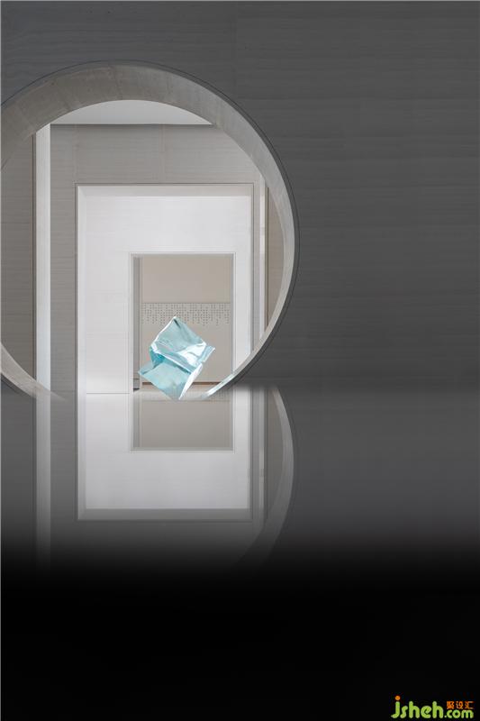 觀訪者隨著空間動線,須經(jīng)過一條干凈又充滿體驗感的狹長過道去到更多功能區(qū),設(shè)計運用數(shù)字化技術(shù)在LED屏幕墻上展示與人的互動關(guān)聯(lián),隨著人緩緩前行的步伐,墻上泛起一圈圈的“漣漪”,為空間帶來縹緲的夢幻感。