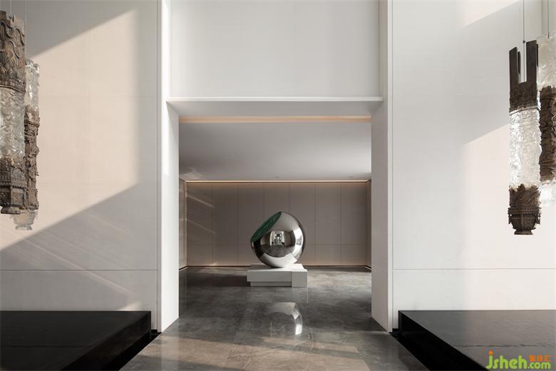 在過廳中,傳統(tǒng)的手工藝以現(xiàn)代化的新材料創(chuàng)意組合,將磚雕的精工技藝與鉑晶材料結(jié)合,呈現(xiàn)了一組彰顯地域歷史特色和現(xiàn)代藝術(shù)之美的藝術(shù)裝置。