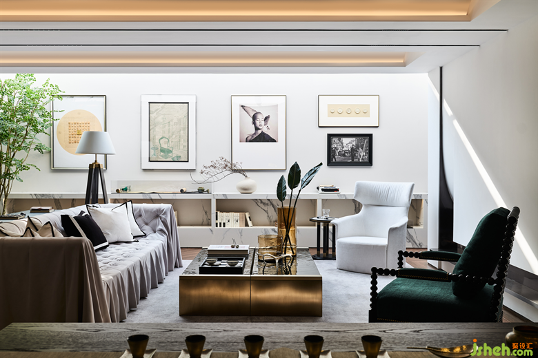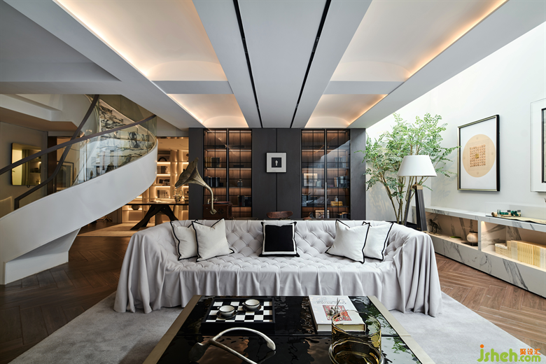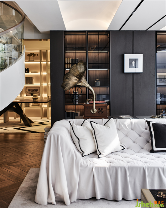 △從藝術(shù)感的樓梯向下,我們所期待的生活場景一一呈現(xiàn),可以感覺到文化在流淌、看到主人的修為以及對中西生活方式開放而包容的態(tài)度。