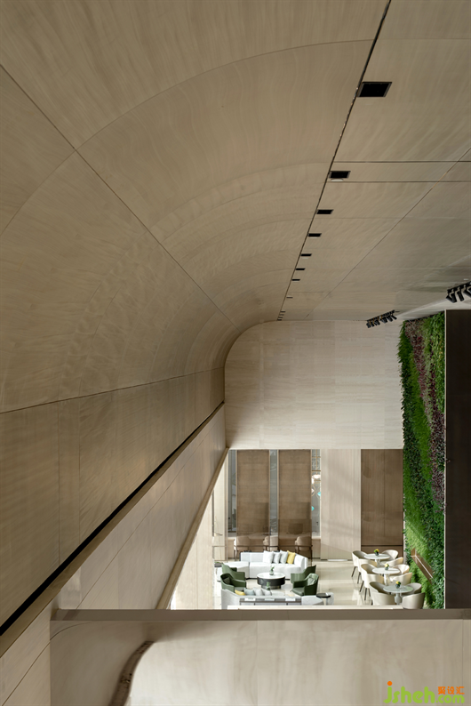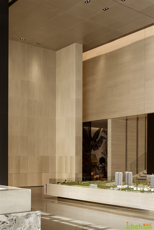 售樓處設(shè)計(jì)師以各種精巧的細(xì)節(jié)來消解大尺度空間帶來的距離感,并在材料的質(zhì)感和色彩上注入溫度,交織出一個(gè)與人親近,簡(jiǎn)潔純粹的公共空間。