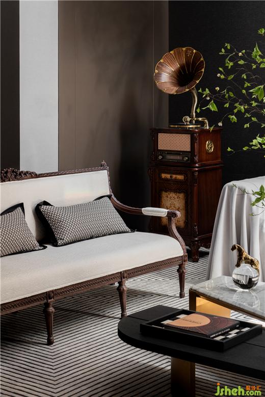 壁爐中的紅色火焰烘托氣氛,一臺古典優(yōu)雅的留聲機是懷舊情結的復刻影印的,別墅設計讓復古氣韻和時尚感得以美妙交融。讓人感到一絲浪漫和迷醉,撩撥著人的心弦。