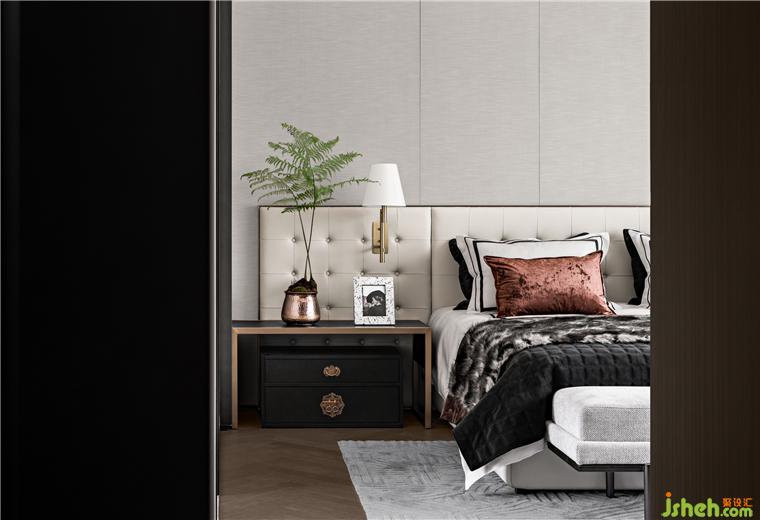 動靜清晰分區(qū)是別墅產品的一大優(yōu)勢,位于二層的臥室擁有絕對的安靜和私密感。別墅設計主臥床體硬裝一體化造型,時尚簡潔。儒雅淡然的色彩,細膩柔和的材質匹配休憩環(huán)境所需的溫和氛圍。