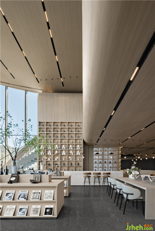 營銷中心設(shè)計(jì)項(xiàng)目室內(nèi)面積近3000㎡,設(shè)計(jì)疊加功能組合,將三個(gè)樓層以品牌展示、商務(wù)、文創(chuàng)、娛樂、休閑等不同主題功能模塊串聯(lián)。除了必要的公共區(qū)域,如接待區(qū)、沙盤區(qū)、展示區(qū)之外,其他空間全部為滿足社區(qū)生活需求而生,涵蓋輕食、咖啡、茶飲、閱讀、手工、花藝、運(yùn)動……人于空間中活動,能感知到豐富多姿的生活狀態(tài)。