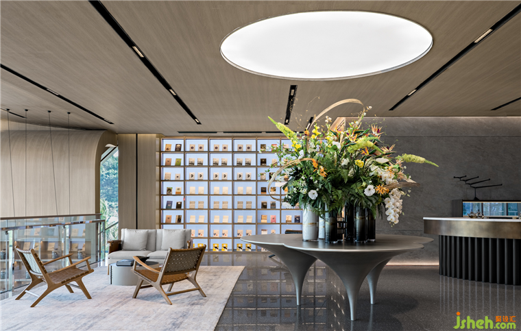 營銷中心設計陳設在場景細分上做精細化考量,用不同類型的家具組合,區(qū)分出共享辦公場所和閱覽區(qū)。臨窗落座,柔光之下,捧上一本好書,消磨一段好時光。