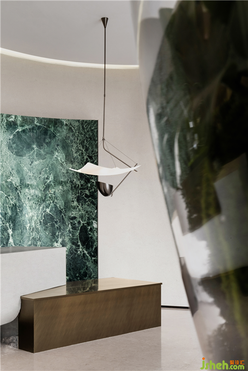 售樓中心設計空間的結構與立面與建筑型體相互呼應,其中建筑設計中的弧形線條設計語匯延展至室內。