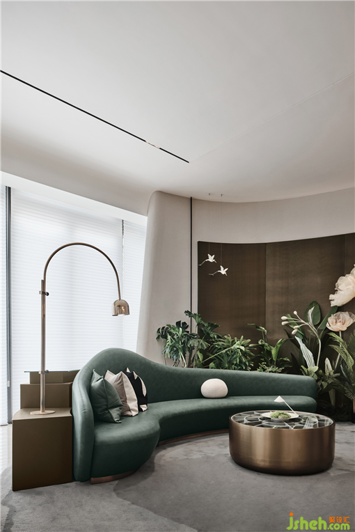 室內(nèi)以樸質(zhì)、自然、生態(tài)的格調(diào)打造,售樓中心設(shè)計(jì)整體空間界面以素雅的白色為基調(diào),大量使用淺色的溫潤(rùn)石材鋪陳出干凈塊面的空間底蘊(yùn),結(jié)合綠色大理石的適時(shí)穿插使空間在素凈自然的風(fēng)格元素中增加靈動(dòng)氣息。