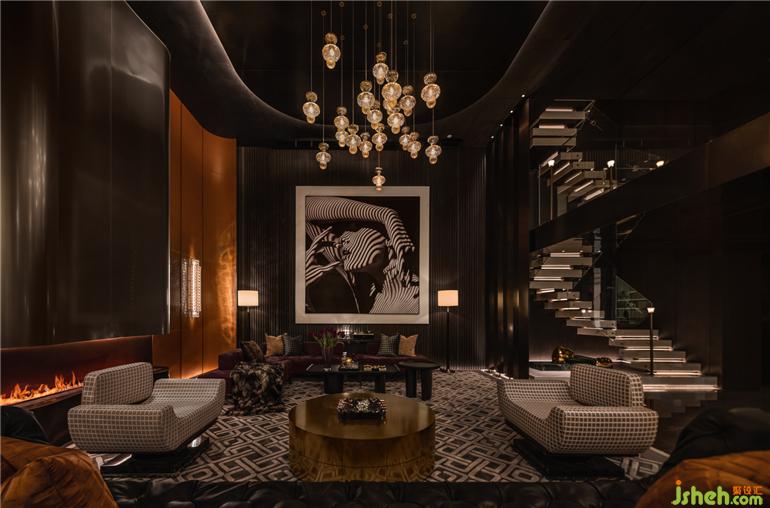 碩長(zhǎng)的藝術(shù)吊燈傾墜而下,串聯(lián)雙層空間,舒展之姿極具視覺(jué)張力。它在一個(gè)充滿昂貴材料和高級(jí)家具的地方如此契合,為空間增色。