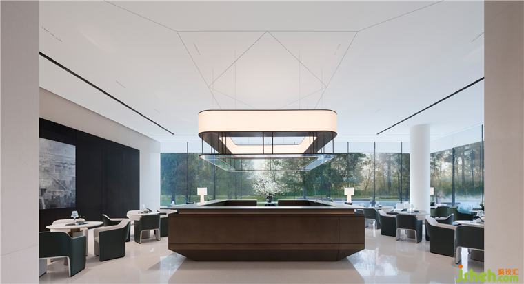 形態(tài)間的成角對比,光的結(jié)合,擁有雄渾的力量美與流動的氣韻,組建出一個典雅與力量并存的空間。