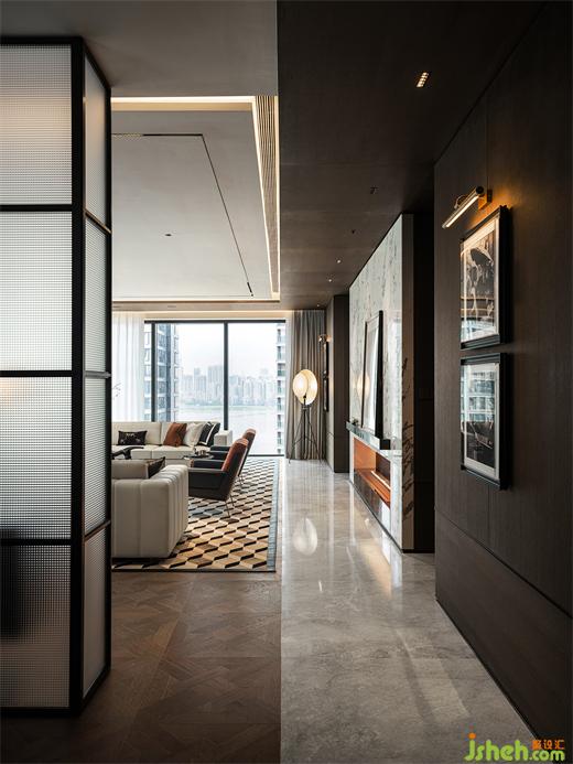 光線(xiàn)的運(yùn)用,材質(zhì)的選擇及墻壁的裝飾都經(jīng)過(guò)精心策劃,樣板房設(shè)計(jì)以營(yíng)造一種深邃而具有層次感的藝?yán)雀裾{(diào)。
