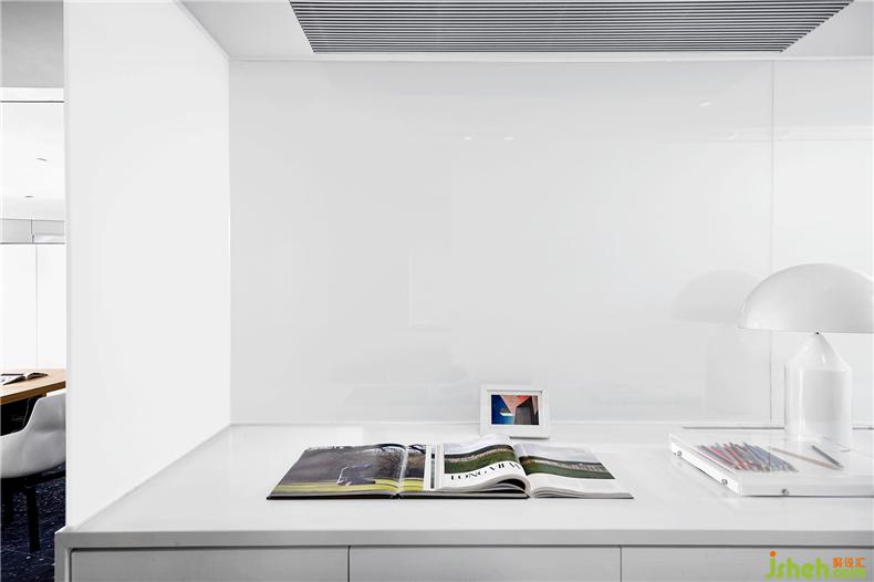 書桌前的玻璃也很有考究,可以在透明和非透明之間自由切換,裝修設(shè)計(jì)實(shí)用的同時(shí)保障了私密性。