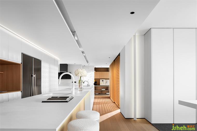 從建筑大師密斯·凡德羅秉持的流動(dòng)空間美學(xué)與蘇州園林動(dòng)線中獲得靈感,江景大平層設(shè)計(jì)李友友室內(nèi)設(shè)計(jì)始終專注于現(xiàn)代簡約主義的私宅設(shè)計(jì)與研究,不斷深化并踐行“空間的開放與自由”、“空間流動(dòng)性”理論 。