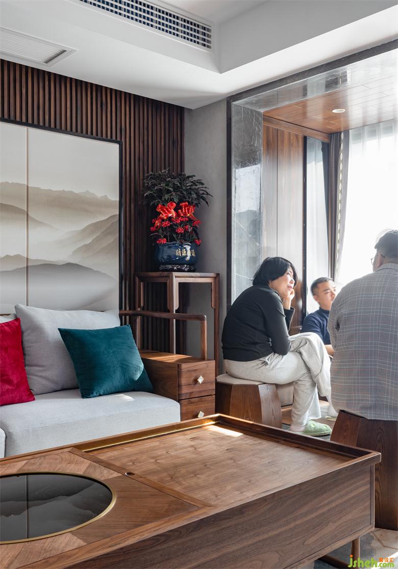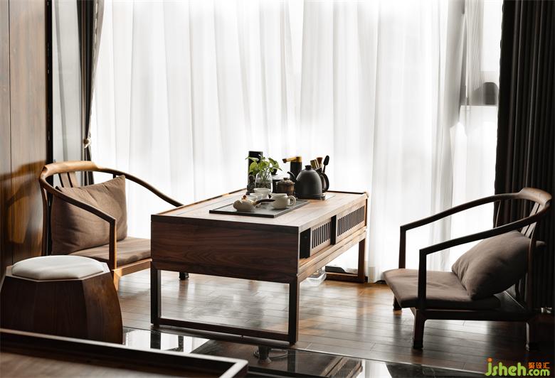 規(guī)劃出的茶空間氛圍感十足,室內(nèi)設(shè)計(jì)師半透的白色窗簾提供朦朧的美感,而在拉開(kāi)窗簾后,高樓層的最佳陽(yáng)光就會(huì)完美呈現(xiàn)出來(lái)。即便處于嚴(yán)寒冬日,采用的地暖也能讓住戶舒適,新風(fēng)系統(tǒng)則使得住戶不開(kāi)窗也能享受優(yōu)質(zhì)的空氣,室內(nèi)設(shè)計(jì)師中央空調(diào)為本身局促的空間留出更多空間規(guī)劃使用。