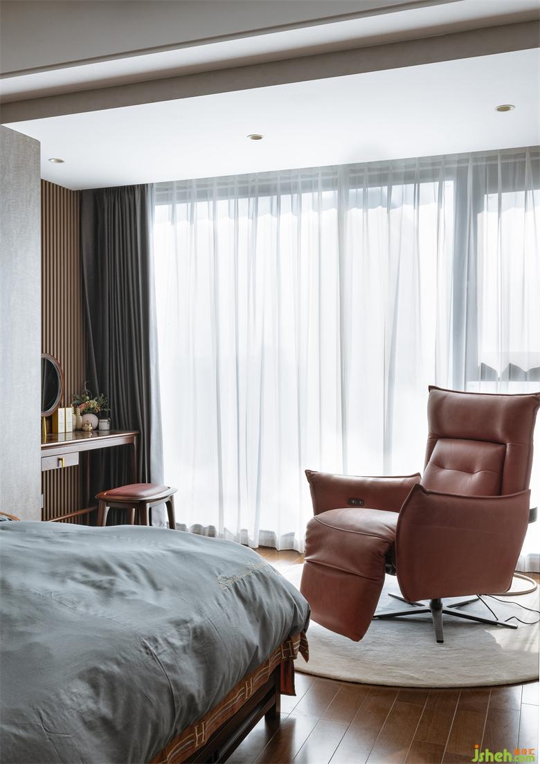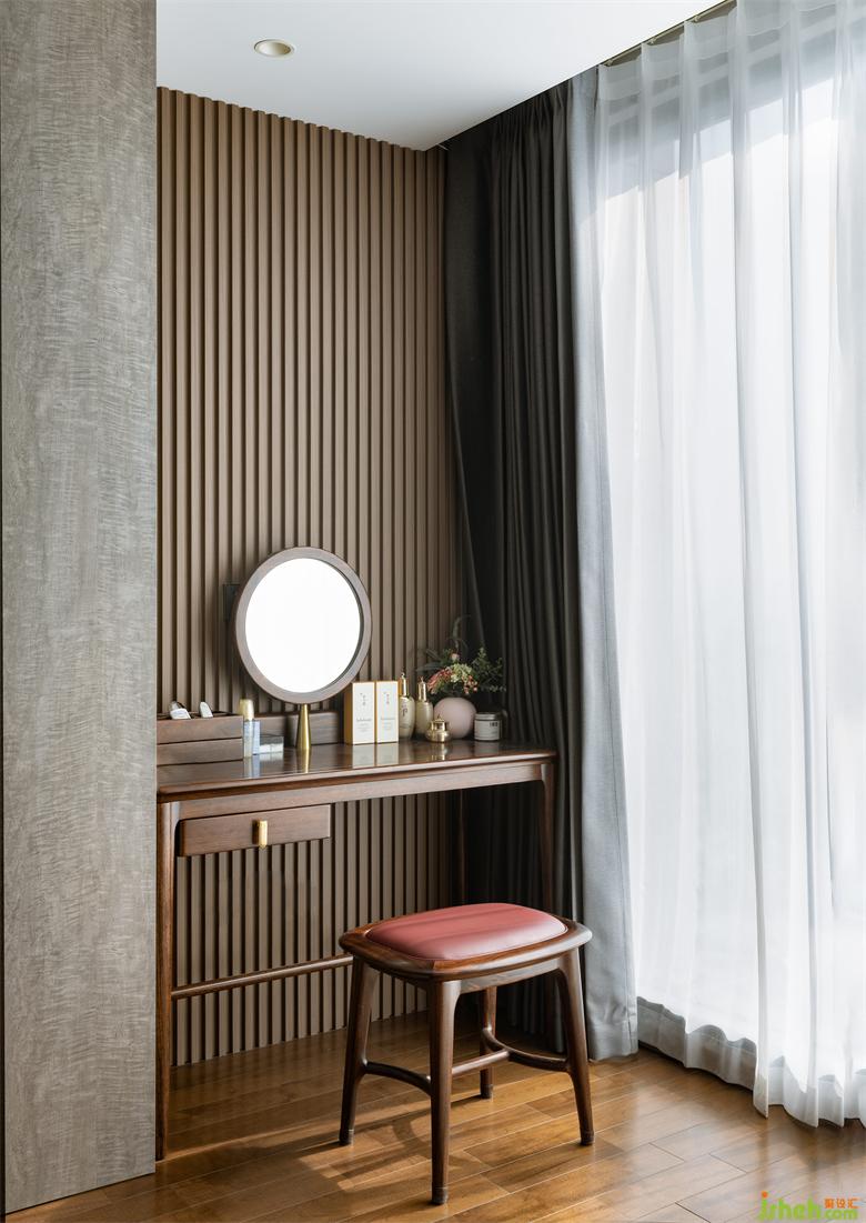 在主臥與主衛(wèi)使用一塊長虹玻璃,室內(nèi)設(shè)計師在滿足采光的同時更顯新中式味道,滿足實用與審美。長虹玻璃隔斷,藏拙的同時,原本昏暗的二樓因為良好的采光而更加美觀。