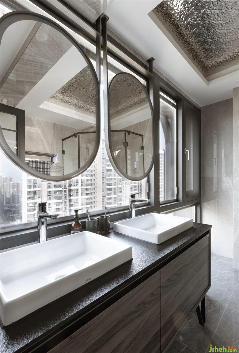 二樓改造后的公衛(wèi),規(guī)劃后擁有一流的采光,室內(nèi)設(shè)計師雙盆設(shè)計即便洗漱在高峰期也不會顯得局促擁擠,使得主臥也能擁有單獨(dú)的衛(wèi)生間,更好地滿足住戶的洗漱需求,也是對空間利用率的提升。