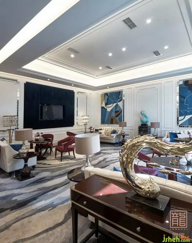 材質(zhì)上設(shè)計公司運用石材拼花、木作及香檳金線條勾勒。整體設(shè)計簡潔時尚富有質(zhì)感,給人以簡約、奢華、時尚之感。