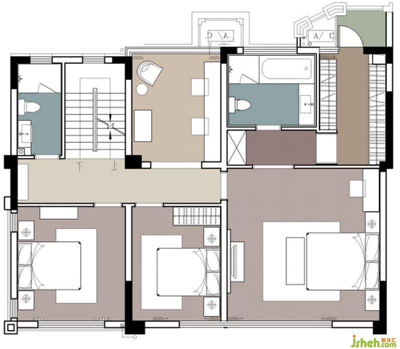 室內設計師為了讓主臥更具舒適性,特地將主衛(wèi)面積增大,變成功能齊全的主衛(wèi)空間。另將原本開間較小的書房取消,改為大衣帽間,作為高端居住方式的標配。