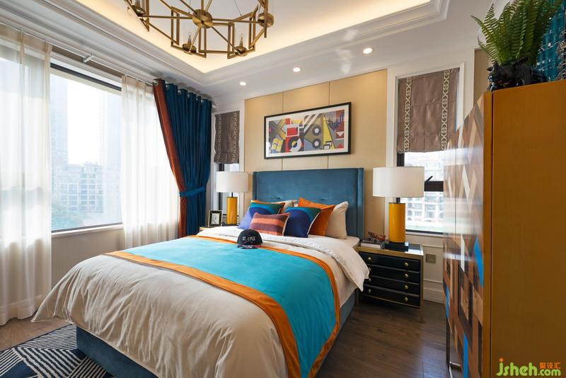 主臥空間加入俏皮動感的活力橙,以其溫潤的質感和溫暖的色澤弱化高級灰?guī)淼母呃滟|感,使臥室極具柔和的感觸。主人時尚與優(yōu)雅的特質也表現(xiàn)的淋漓盡致。
