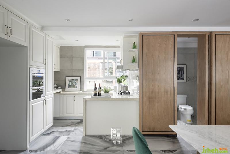 開放式廚房變成了和家人朋友一起交流的場所,陽光揮灑進(jìn)來,干凈明亮的廚房會(huì)讓下廚的人擁有一個(gè)清新愉悅的舒適體驗(yàn)。