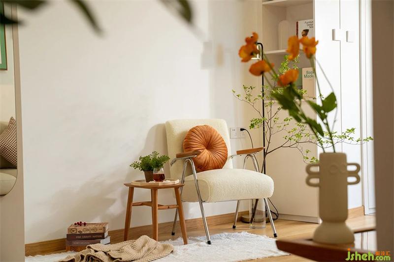 這面留大白的墻就是每個節(jié)日的背景墻,隨心布置~也是客廳的閱讀角,旁邊的收納柜留了開放的書柜,放置常閱的書本。傍晚,深夜,留一盞暖光燈,靜享閱讀的快樂。