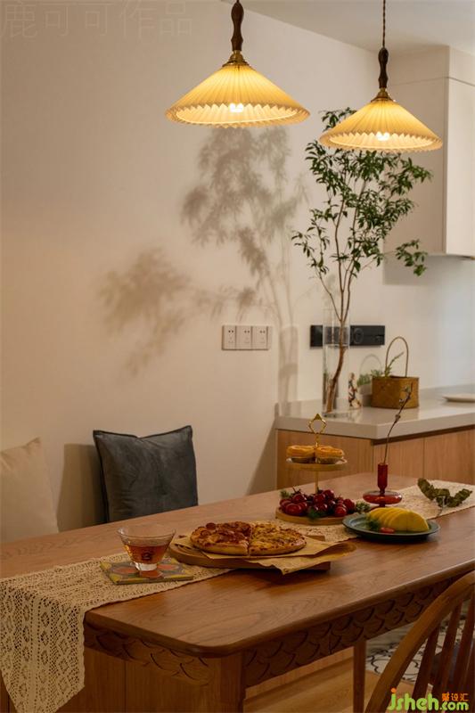 餐廳定做了卡座,地柜可增加收納,固定的坐位不需要給餐椅留位置,更省空間,日常可以滿足六人用餐。