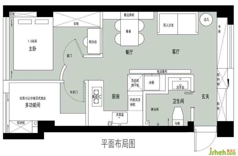 客廳餐廳沒分區(qū),功能分散。