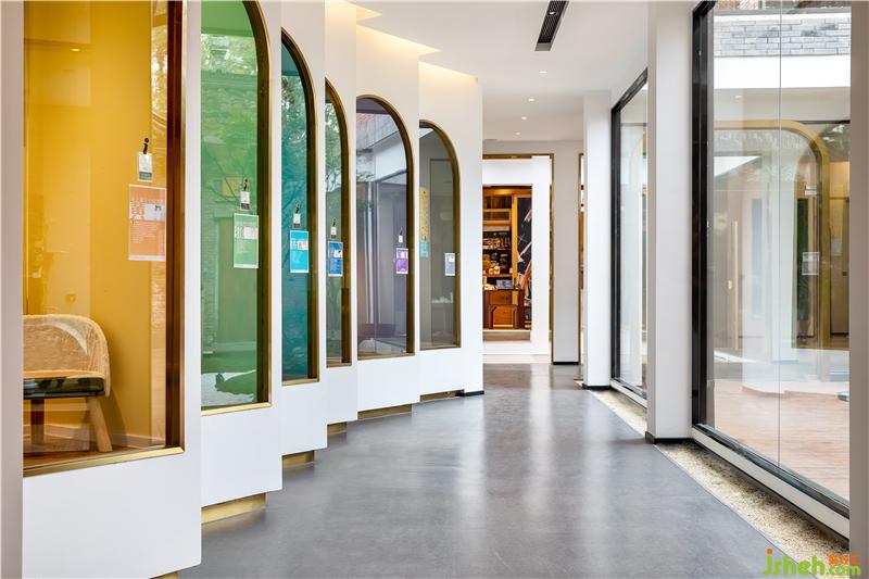 空間沿用原民國中式院落的建筑格局基礎(chǔ)上合理利用,劃分成王家大院(入戶花園),貓公寓,醫(yī)務(wù)室,貓郵局,貓數(shù)屋,茶水吧,海外北堂,大教室,茶室,創(chuàng)客空間,烘焙教室等空間。充分運(yùn)用“空間情緒設(shè)計(jì)”理論,通過空間層次與色彩、陽光的相互輝映,改善我們與周圍一切事與物的關(guān)系。地臺(tái)與地面形成自然空間隔離,滿足功能性的同時(shí)做到空間的延展。二層空間有較高的斜面頂我們利用這個(gè)層高做了玻璃棧道天橋讓空間有更多的層次與自由。文創(chuàng)設(shè)計(jì)