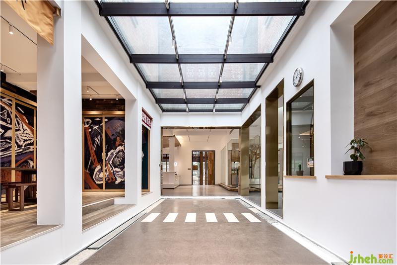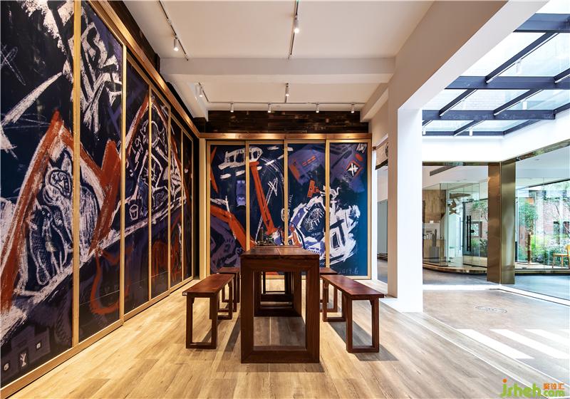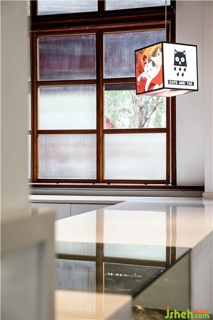 自然陽光透過落地玻璃引入空間,使得每一個空間都變得明亮并溫馨,傳統(tǒng)材料的創(chuàng)新應(yīng)用,現(xiàn)代環(huán)保的措施。素水泥,老榆木,老船木等舊材料與玻璃,黃鈦金不銹鋼,白色烤漆板等新材料之間的碰撞與融合帶動空間的靈動性。內(nèi)部空間中大量的舊材料利用,我們設(shè)計成了家具及貓屋提高了廢物的再生性及環(huán)保。文創(chuàng)設(shè)計
