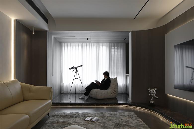 客廳設(shè)計簡潔干凈,盡顯輕松、自然、舒適??臻g之內(nèi),簡約的燈帶及電視墻線條分明,家居設(shè)計點綴的紅藍(lán)色交織出溫暖氣息,讓家的意境更自在有趣。