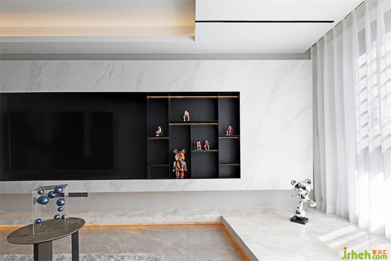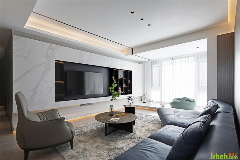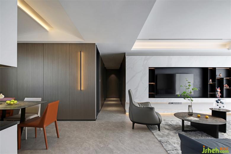 The first impression that the sitting room gives a person is advanced/fashionable/contracted, the tonality of whole space also is to undertake design around above 3 points. The collision of different metope materials makes the vision richer, and the clean line feeling on the top of the metope makes the space more agile.