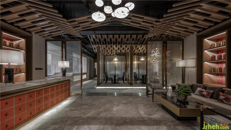 進(jìn)入大堂映入眼簾是凌空壯似涌動(dòng)著的水晶吊燈映襯于空間中,似星光點(diǎn)點(diǎn),璀璨斑駁。裝修設(shè)計(jì)算盤式的隔斷屏風(fēng)分隔了大堂與休息區(qū),木質(zhì)算珠成串鋪排,極具古樸典雅。千里江山圖在沙發(fā)區(qū)背景靜靜流淌著光彩,組成一個(gè)大空間的基調(diào):一虛一空靈,一實(shí)一莊重。配合著大廳播放的“千里江山圖”及新東方企業(yè)兼顧人文文化及企業(yè)文化的介紹宣傳,調(diào)動(dòng)著視覺感官和聽覺感官。