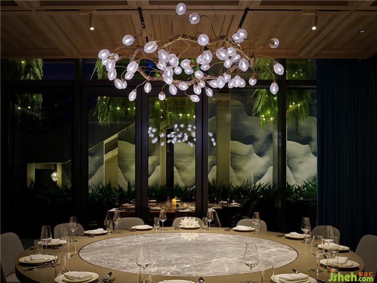 2020年初,融匯國際大廈內(nèi),經(jīng)營多品類菜式的龍庭酒家與寫字樓內(nèi)斐馳辦公同時(shí)完工投入使用,餐廳與斐馳辦公均由大廈投資方開發(fā),WIT方夏設(shè)計(jì)受托完成跨地下兩層的餐廳空間設(shè)計(jì)。