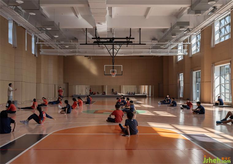 體育館同樣也由倉庫改建,在這里極限容納了1個標(biāo)準(zhǔn)籃球場、2個羽毛球場。學(xué)校裝修設(shè)計(jì)室內(nèi)吸音與球場防撞材料相結(jié)合,減少回聲也減少運(yùn)動時(shí)因緩沖空間不足而帶來的碰撞受傷風(fēng)險(xiǎn)。